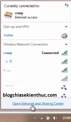 Nhấn chuột phải vào biểu tượng mạng => chọn Open Network and Sharing Center